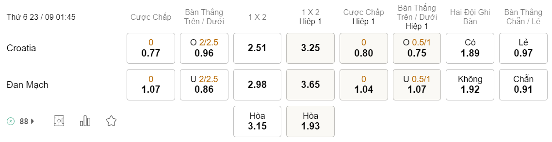 Tỉ lệ kèo Croatia vs Đan Mạch