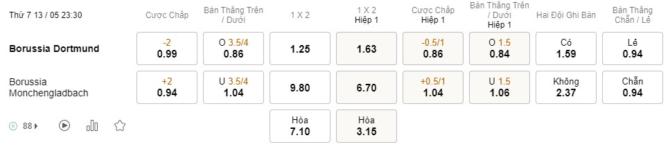 Tỉ lệ kèo Dortmund vs Gladbach