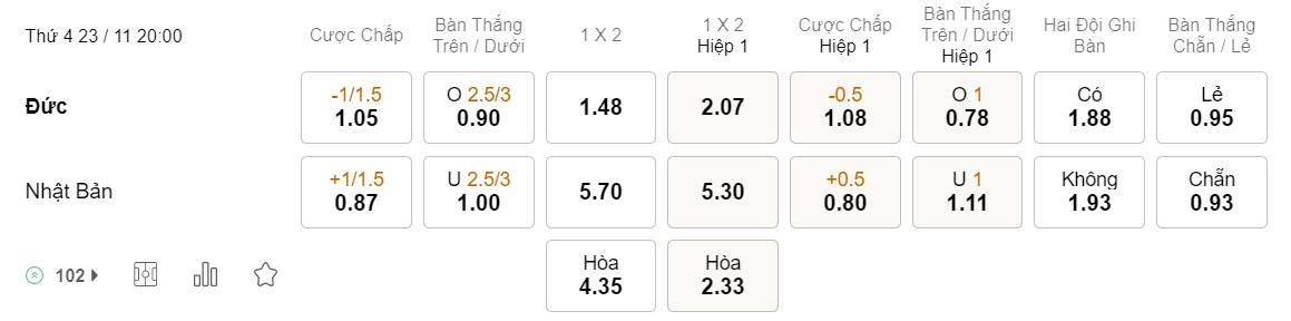 Soi kèo hiệp 1 Đức vs Nhật Bản: 1.08*0.5*0.80