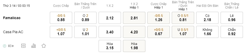 Soi kèo châu Á Famalicao vs Casa Pia: 0.85*0/0.5*1.07