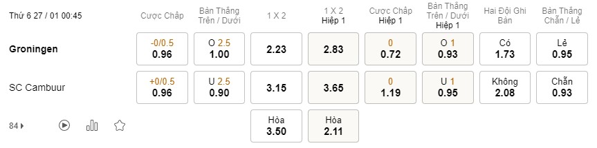 Soi kèo tài xỉu Groningen vs Cambuur: 1.00*2.5*0.90