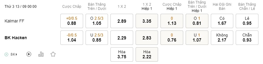 Soi kèo hiệp 1 Kalmar vs Hacken: 1.13*0*0.76
