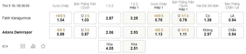 Soi kèo hiệp 1 Karagumruk vs Demirspor: 0.76*0/0.5*1.13