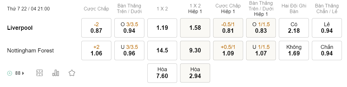 Nhận định, soi kèo Liverpool vs Nottingham 21h00 ngày 22/04/2023