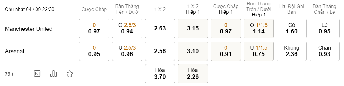 Soi kèo hiệp 1 MU vs Arsenal: 0.97*0*0.91
