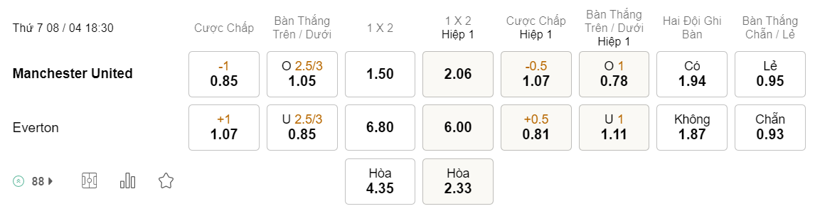 Soi kèo hiệp 1 MU vs Everton: 1.07*0.5*0.81