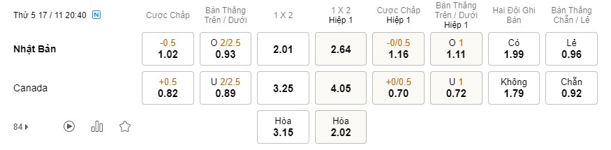 Tỉ lệ kèo Nhật Bản vs Canada