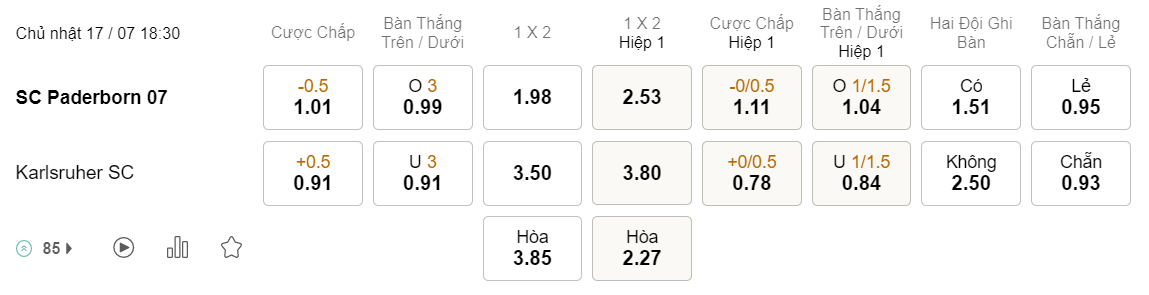 Tỉ lệ kèo Paderborn vs Karlsruher