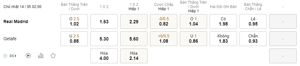Soi kèo hiệp 1 Real Madrid vs Getafe