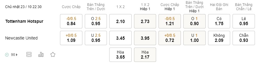 Tỉ lệ kèo Tottenham vs Newcastle