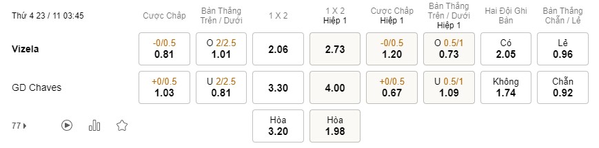 Soi kèo hiệp 1 Vizela vs Chaves: 1.20*0/0.5*0.67